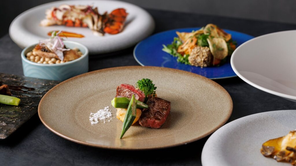 オマール海老、キャビアといった厳選された高級食材に加え、地元鎌倉の新鮮な旬野菜や、メインとなる厳選牛フィレ肉とフォアグラを使用した創作鉄板料理が、クリスマスだけの特別なひとときを華やかに彩ります。